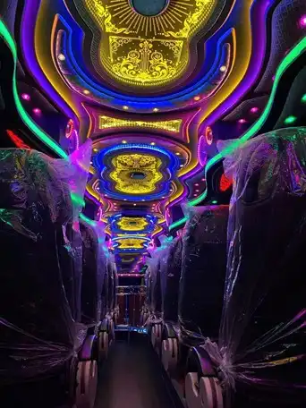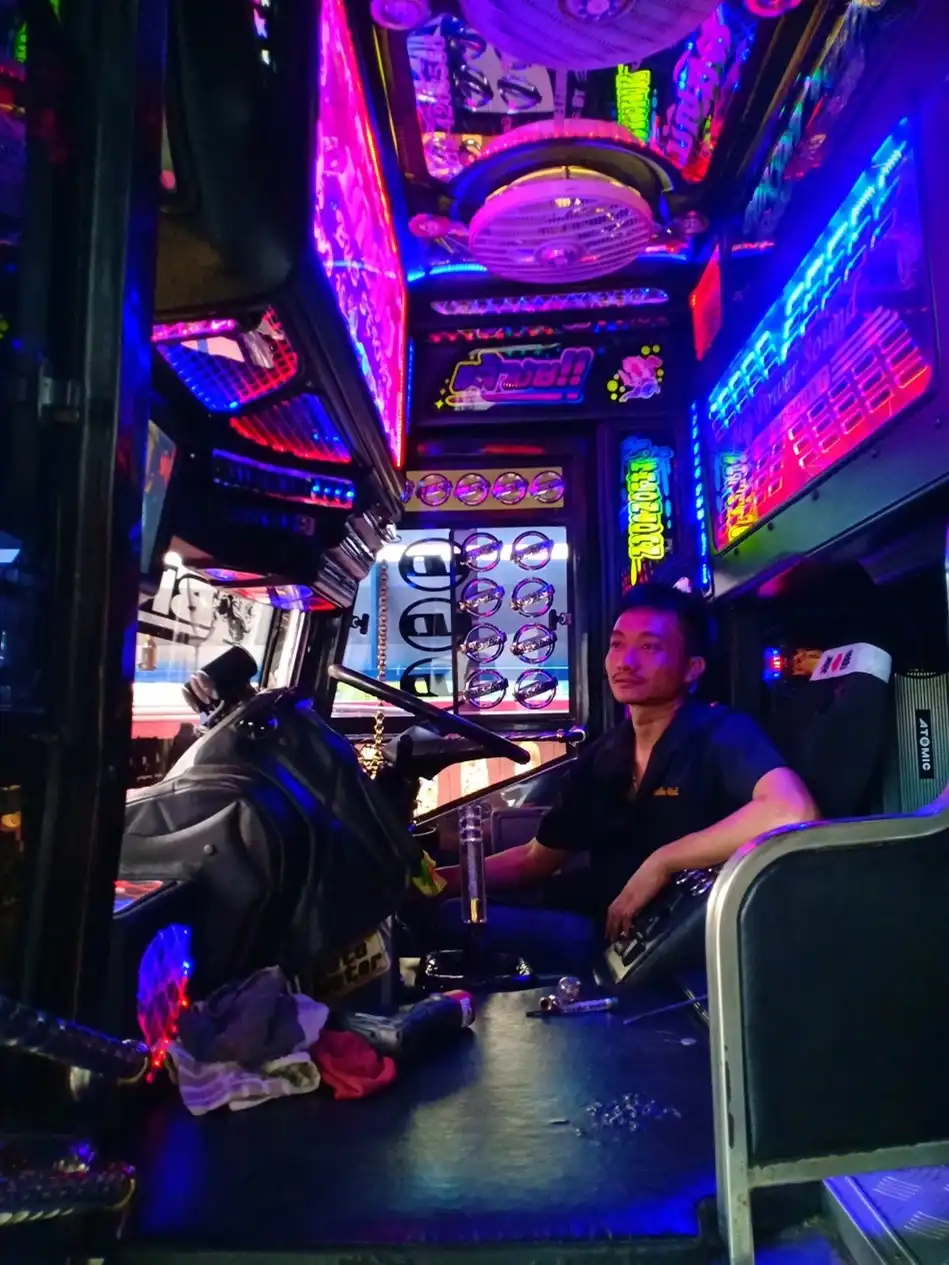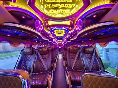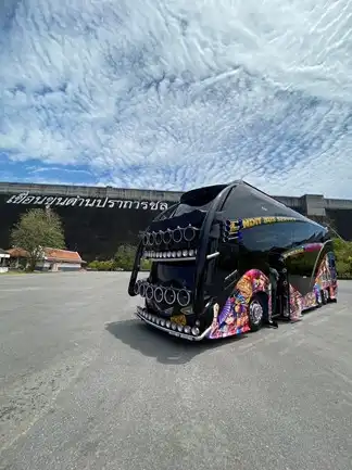 รถบัสของเราเป็นรถบัสที่ถูกปรับปรุงให้มีความทันสมัย และสวยงามจากสีของรถและลายตัวถังของรถ ทำให้ดูเด่นสะดุดตา อีกทั้งภายในยังถูกทำให้มีความสวยงาม(VIP) เหมาะแก่การสร้างบรรยากาศในการให้ความบันเทิงอีกด้วย พร้อมทั้งความสะดวกสบายตลอดการเดินทาง