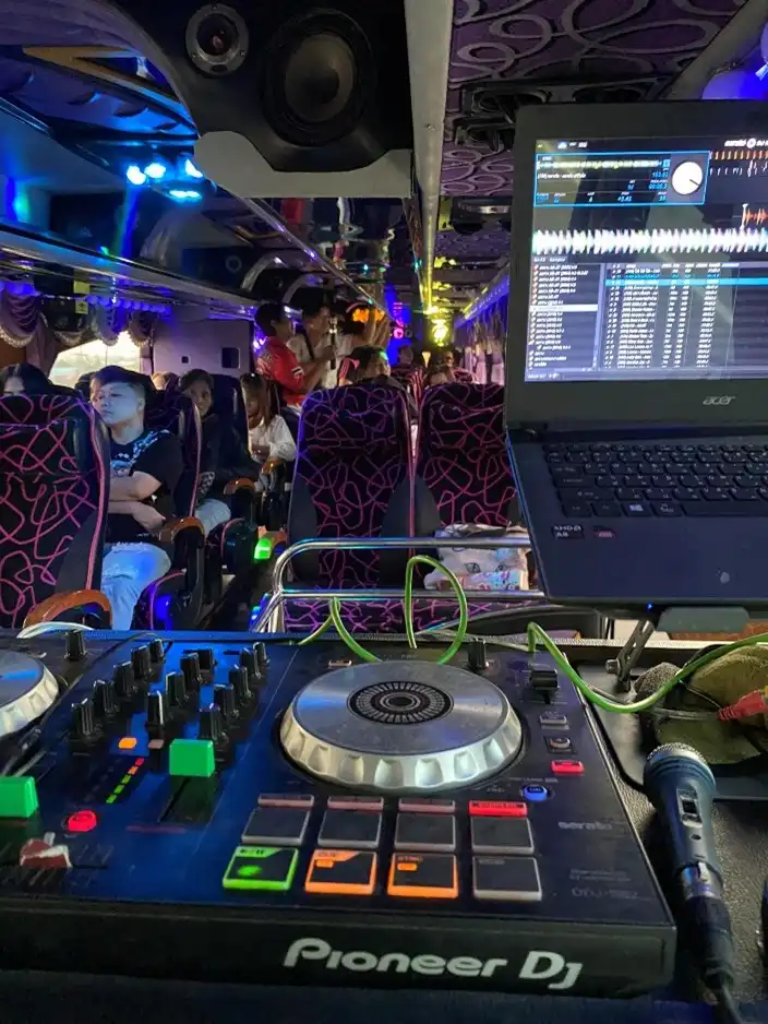 รถบัสของเราติดตั้งระบบเครื่องเสียงพร้อมกับคอมพิวเตอร์ไว้สำหรับร้องเพลงและระบบแสงสีต่างๆภายในรถ ซึ่งทำให้ได้รับอรรถรสมากยิ่งขึ้น
